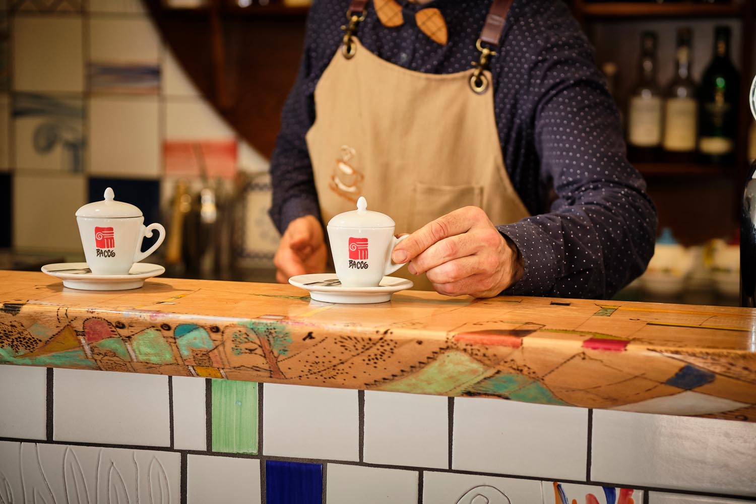 Non vi meravigliate se, qui da Bacco, il caffè è stato pure “battezzato” ...se chiamma “CafFernando” perché Fernando è chi ve lo prepara, chi se ne cura e se ne occupa con una passione unica e rara!Ahhh...e non “trecate” a leggere questi pensieri se la vostra tazzina è sul bancone...’O cafettiere ci tiene acchè beviate la sua mercanzia prima che si freddi, altrimenti... addeventa “ ‘na ciofeca”!