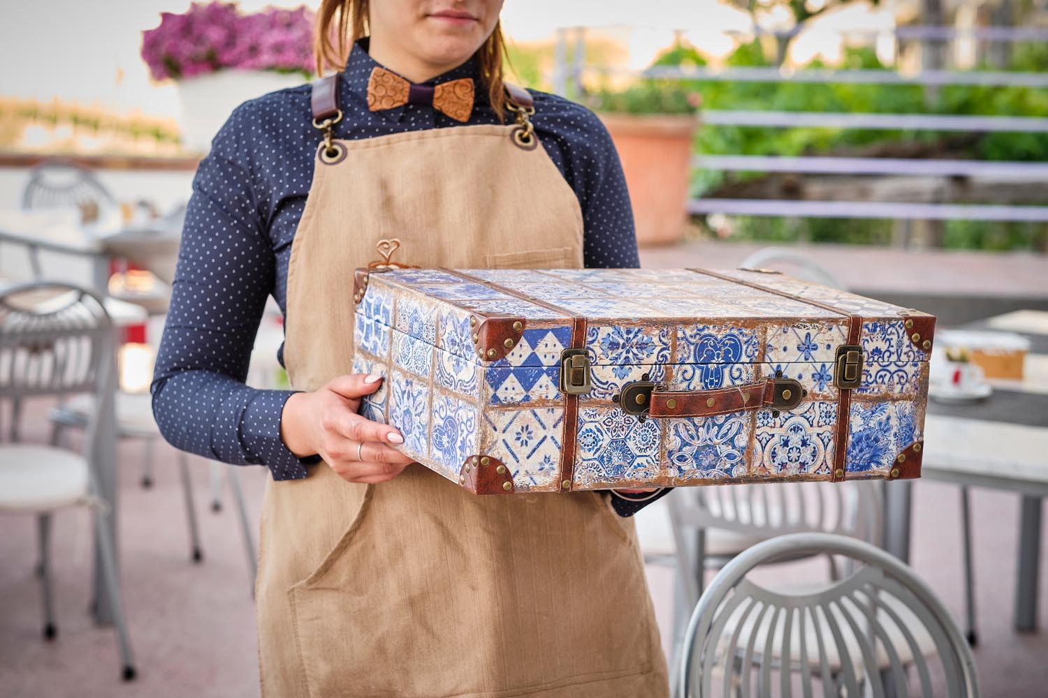 In questa vertigine di panorami, immersa in una luce senza suoni, sospesa, irreale e segreta come una favola, terrazzi e balconi a rincorrersi, ad alternarsi e a nascondersi fra pergolati e ombrelloni.