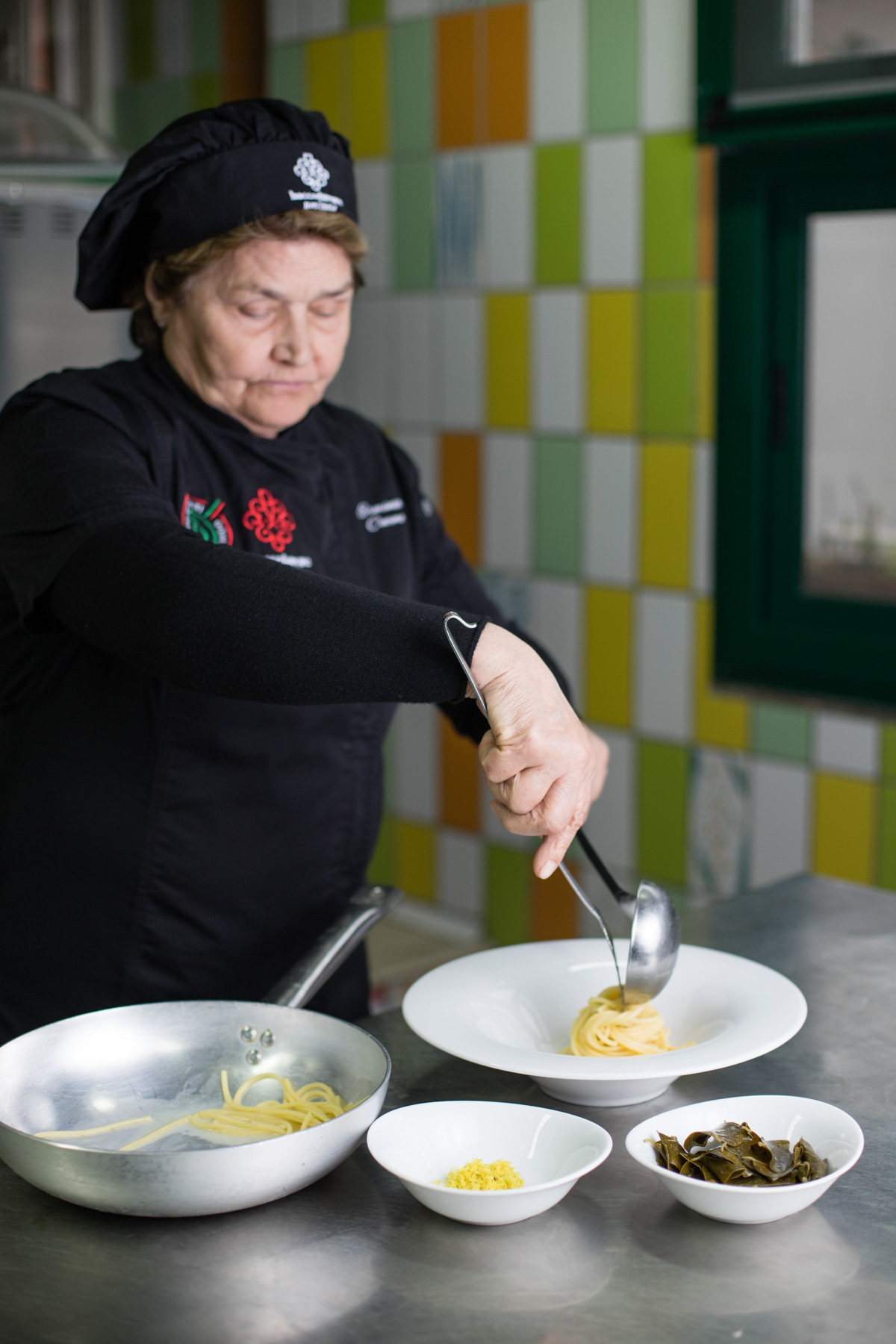 si può tranquillamente affermare che quel tirocinio Le fu molto utile prima per dimostrare a sé stessa di non essere una sprovveduta e poi per diventare protagonista di una cucina ricca di fragranze semplici quanto raffinate, rare quanto pregiate. Ci piace citare alcuni piatti che compongono il suo vasto repertorio : Reginette al pesto furitano, Cavatelli alle foglie di capperi, Linguine alla colatura di alici, Totani e patate, Migliaccio, Minestra maritata e un’ infinità di altre leccornie.