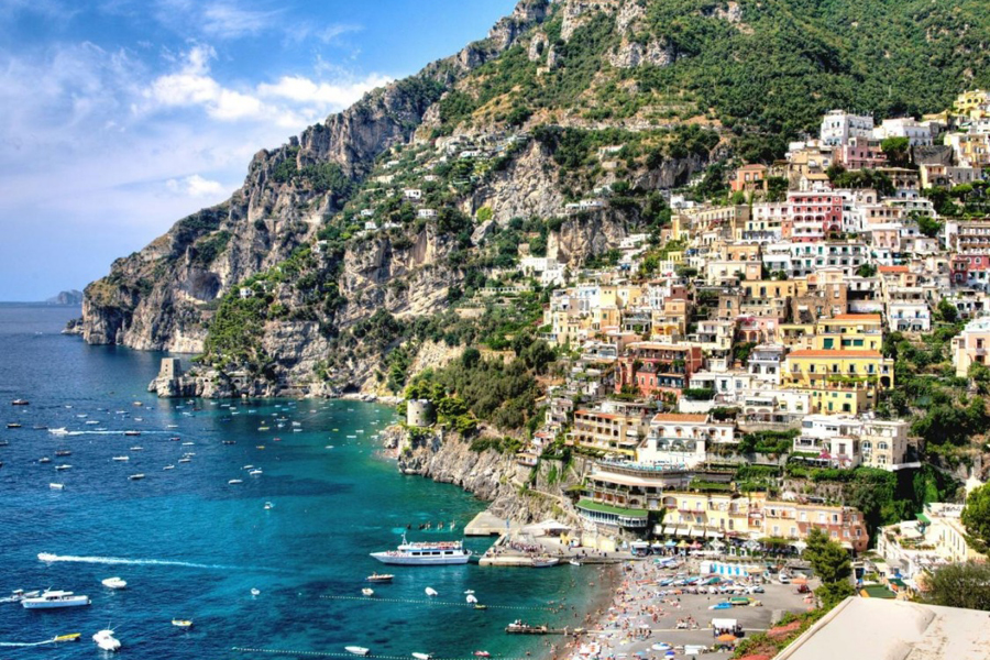 Positano is one of the most spectacular tourist destination and famous in Italy. The pearl of the Amalfi Coast, famous for its romantic atmosphere, the sea, and the food for the local fashion, clothing and footwear. The Positano sandals, for example, are tailor made directly in the shop, as if to keep the charm of craftsmanship handed down from generation to generation. The village perched on a hill overlooking the sea, walking tour. It will be pleasant to wander among the characteristic alleys full of craft shops and restaurants, and then get down to the sea along the stairs carved into the rock.